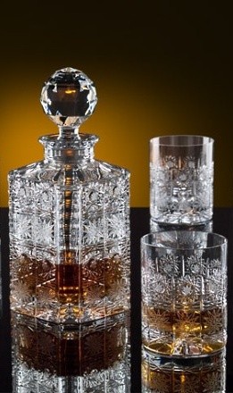 Carafe et 2 verres à whisky. Cristal de Bohême.